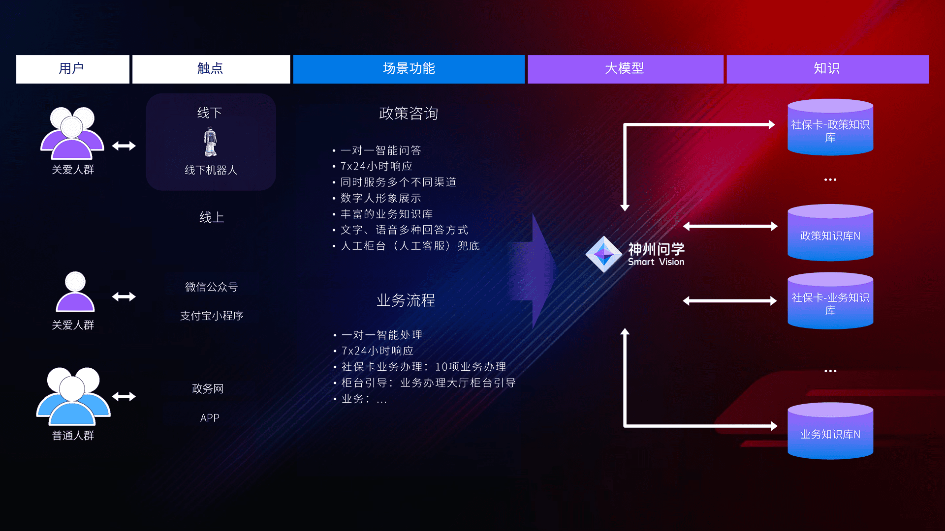 • 线上线下全覆盖:线上提供微信公众号、、、、支付宝小程序、、政务网、、app多种渠道,,,,与线下机器人形成完整服务体系。。